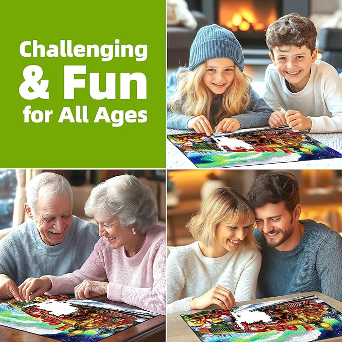 Blueforest Christmas Train Puzzles for Adults 1000 Pieces - 27.5x19.7 Inches Holiday Train Scene with Aurora & Santa Jigsaw Puzzle, Challenging Art Puzzle Home Decor