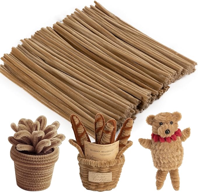 Caydo 200 Pieces Light Brown Pipe Cleaners,Thick Fluffy Chenille Stems, Pipe Cleaner Crafts for Arts & Crafts, Perfect for Making Animals, Flowers, and Festive Decorations