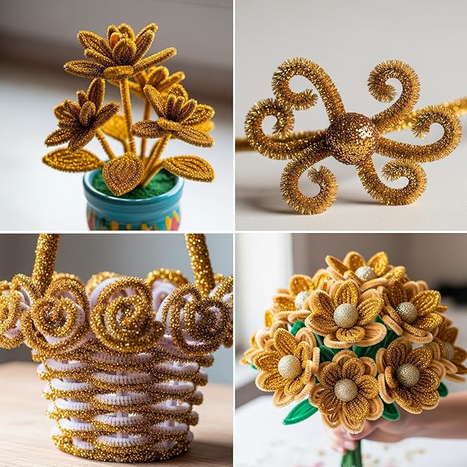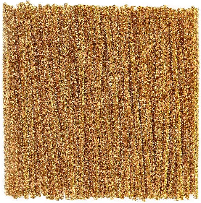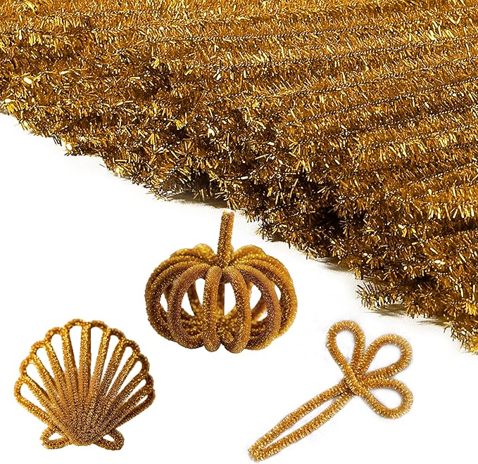 Caydo 200 Pieces Glitter Golden Pipe Cleaners, Thick Fluffy Chenille Stems, Pipe Cleaner Crafts for Arts & Crafts, Perfect for Making Animals, Flowers, and Valentine's Day Decorations