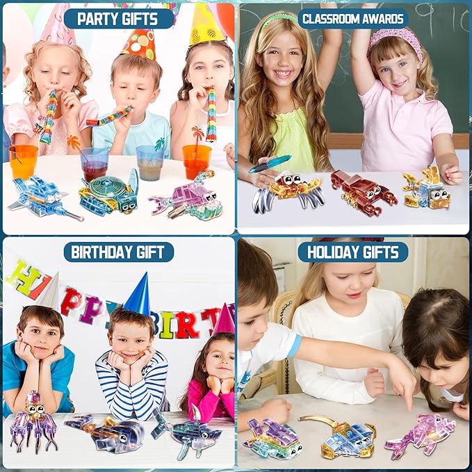 12 Piece Set of Marine Animal Building Blocks, Suitable for Goodie Bags, Stocking Stuffer, Classroom prizes, Birthday Gifts, Boys' and Girls' Toys 12 in one Building Block Set