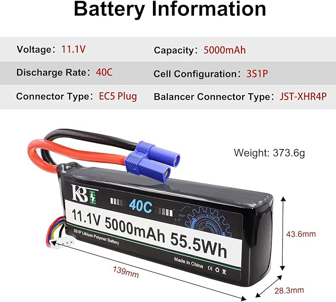 About This High Quality:3S lipo battery is equipped with EC5 Plug and JST-XHR4P connector. It uses high-quality batteries, offers stable... Read more
