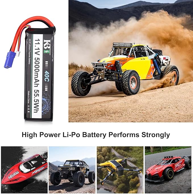 KBT 3S 5000mAh Soft Case LiPo High Discharge Rate Battery with USB Cable 40C(Burst 80C) 11.1V Rechargeable Lithium Polymer Battery with EC5 Plug for RC Car Trucks Boat Vehicle Airplane RC Hobby