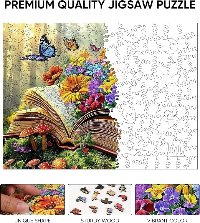 Wooden Puzzles for Adults 500 Pieces, Butterfly Flying of Book Jigsaw Puzzles, Irregular Puzzles Creative Gift for Adults and Kids Family Brain Game, 14.2x18.8 inch