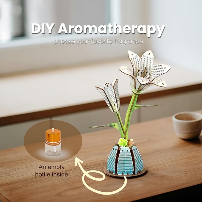 Jege 3D Flowers Wooden Puzzles for Adults,DIY Wooden 2 Flowers per Kit Building Set for Home Decor, Creative Craft Gift Toys Kits with 2 Perfume Bottles and Diffuser Sticks (Rose + Lily)