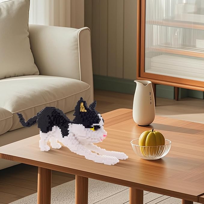 Cat Micro Building Blocks Animal Set, Cow Cat DIY Mini 3D Building Toy Bricks Kit Gift for Adults and Kids, 4800 Pieces (Black & White)