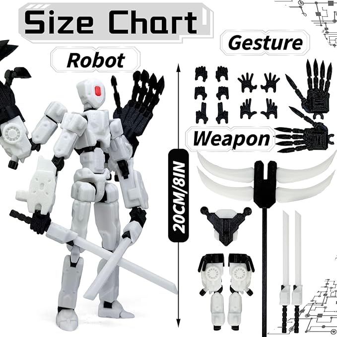 8Inch T13 Action Figure Assembly Completed,3D Printed Multi-Jointed Movable Toy Nova 13 Action Figures Desktop Decorations for Game Lovers Toy (White)
