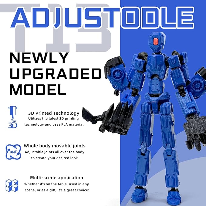 8Inch T13 Action Figure Assembly Completed,3D Printed Multi-Jointed Movable Toy Nova 13 Action Figures Desktop Decorations for Game Lovers Toy (Blue)