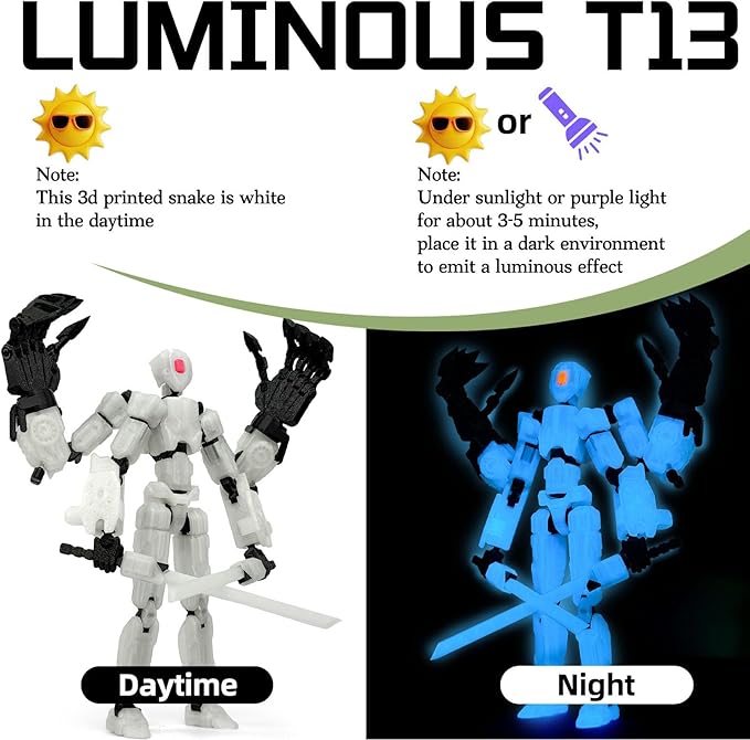 8Inch T13 Action Figure Assembly Completed,3D Printed Multi-Jointed Movable Toy Nova 13 Action Figures Desktop Decorations for Game Lovers Toy (Luminous Blue)