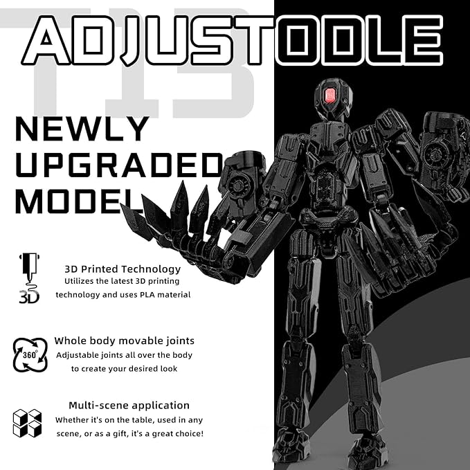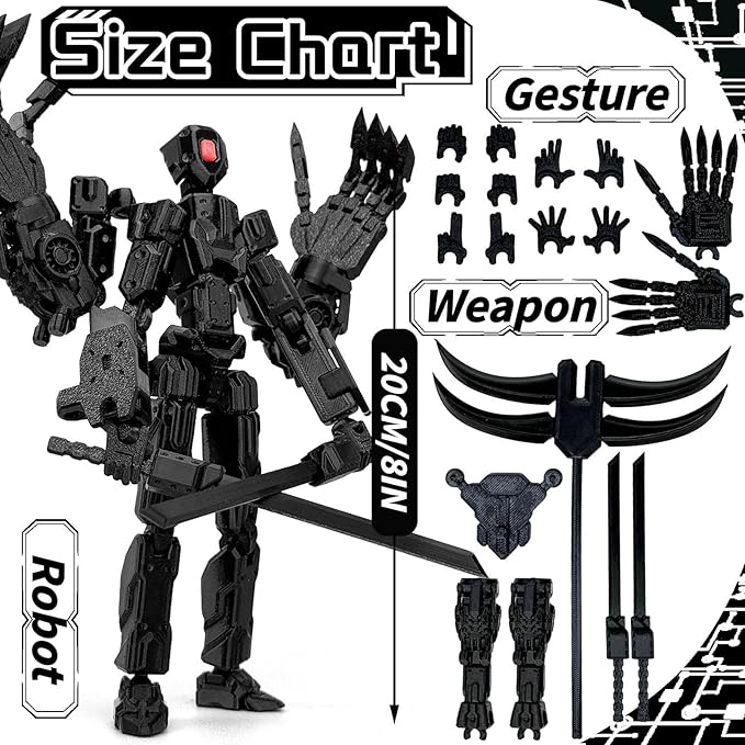8Inch T13 Action Figure Assembly Completed,3D Printed Multi-Jointed Movable Toy Nova 13 Action Figures Desktop Decorations for Game Lovers Toy (Black)