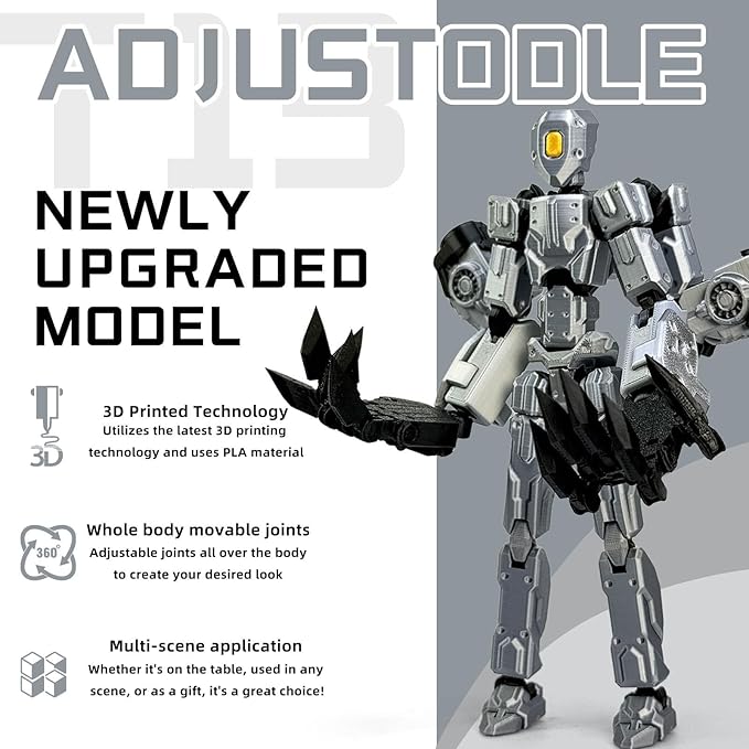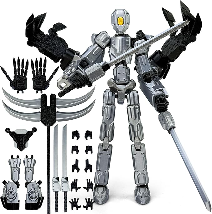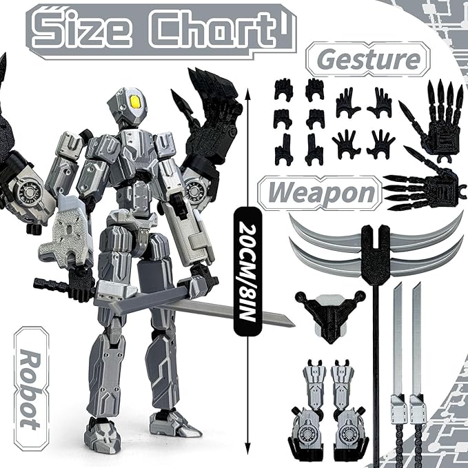 8Inch T13 Action Figure Assembly Completed,3D Printed Multi-Jointed Movable Toy Nova 13 Action Figures Desktop Decorations for Game Lovers Toy (Grey)