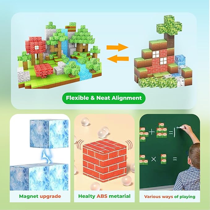 154PCS Magnetic Blocks - Build Animal Forest Set, Magnetic Tiles Building for Boys & Girls Age 3-8, STEM Montessori Sensory Toys for Toddlers Kids Gifts for 3+ Years Old, Construction Toy