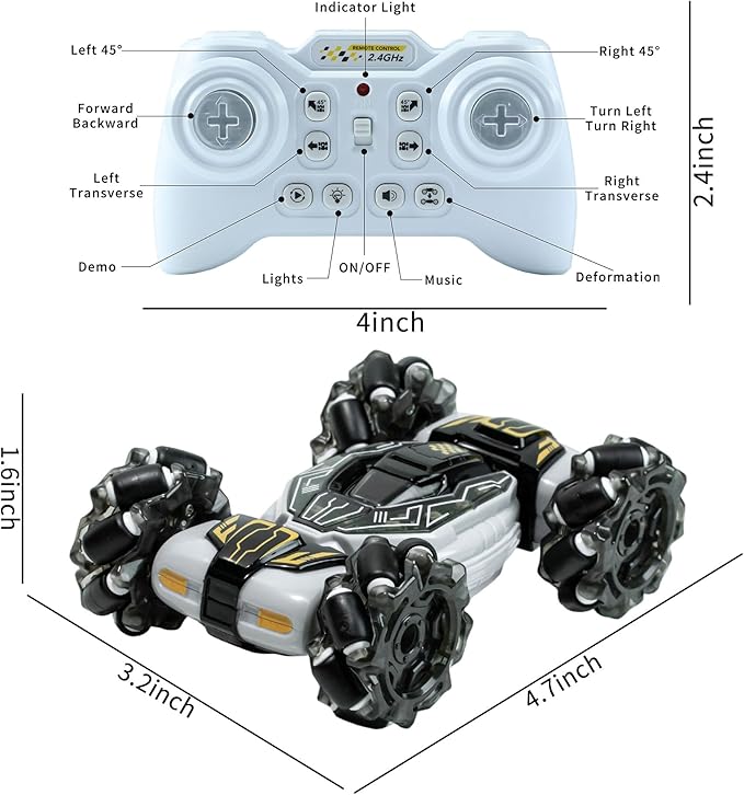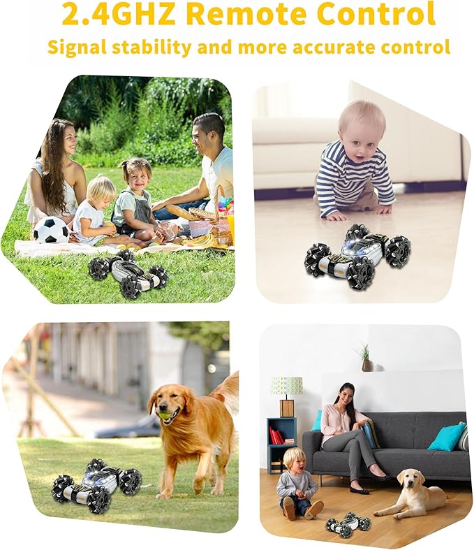 GRANTLEY Gesture Sensing RC Stunt Car - 4WD 2.4GHz Remote&Hand Control Gesture Sensing Car, Double Sided 360° Rotating Off Road Twist Cars with Lights & Music,Gift for Boys Girls