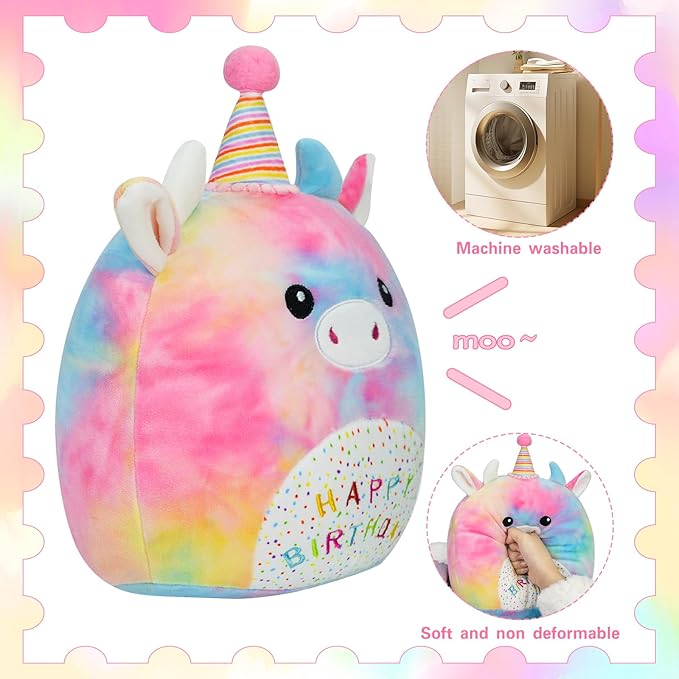 Cow Stuffed Animal Cow Plush Toys 14 Inch Soft Unicorn Plushies Pillow Cute Rainbow Plushies Room Decoration Birthday Gifts for Kids Toddlers Girls and Boys
