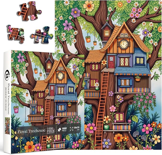 Treehouse Puzzles for Adults 1000 Pieces, Colorful Fantasy Tree of Life Jigsaw Puzzles, Challenging Floral Plant Puzzle