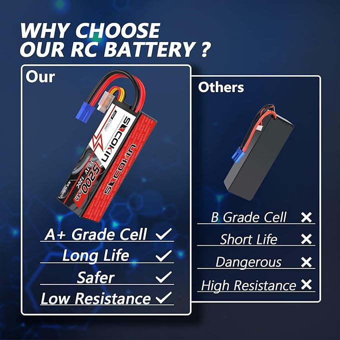 About This Battery voltage : 11.1V ; Capacity: 5200mAh; Discharge:120C; Plug:EC5; Configuration: 3S1P. 3S 5200mAh lipo battery is 138*47*38mm /5.43*1.85*1.49inch(L*W*H),and... Read more