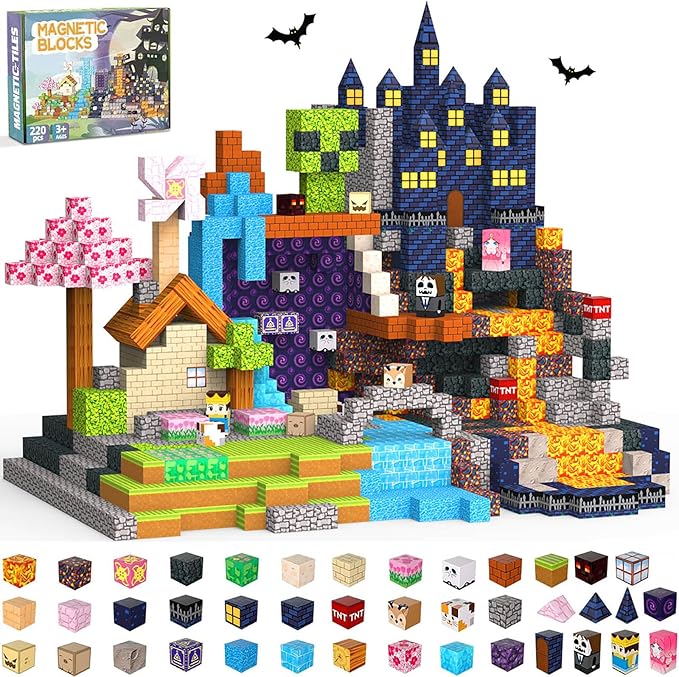 MITCIEN 220 PCS Magnetic Building Blocks - Magnetic Cubes for Kids Ages 3 4-8 8-12, STEM Educational Stacking Toys, Montessori Sensory Toys Gifts for Boys & Girls Christmas, Halloween, Birthday