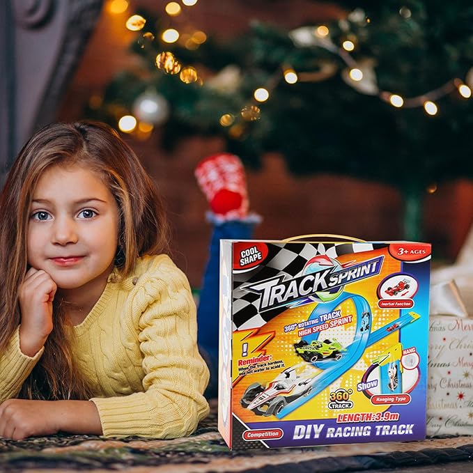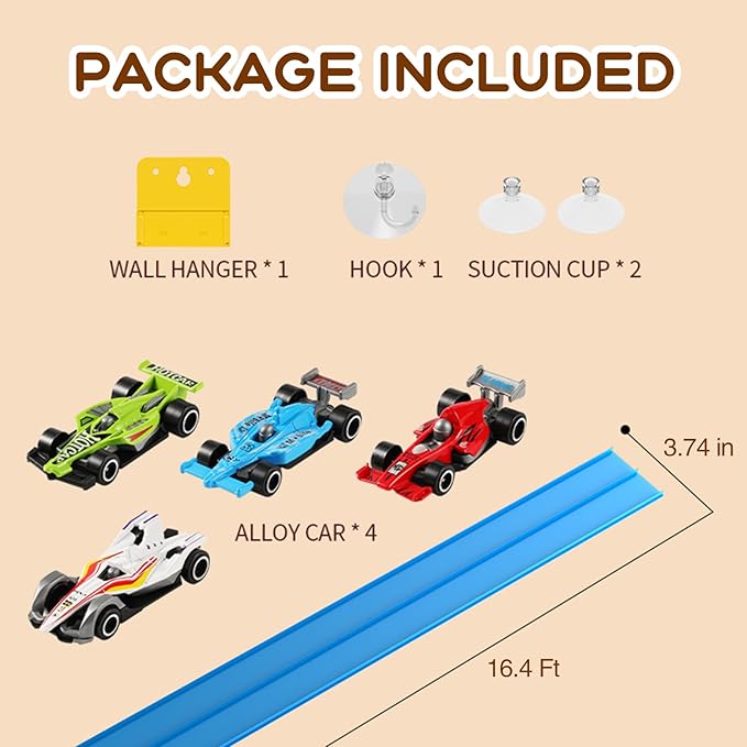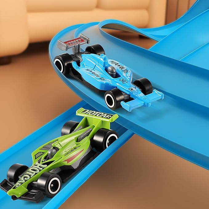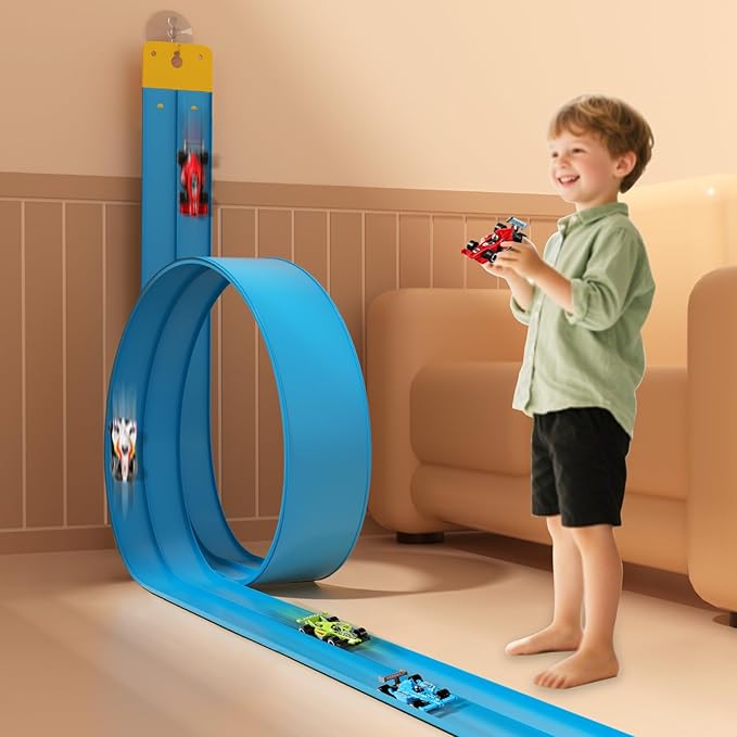 Flexible Track 16.4 Ft Starter Set, Flexible Race Car Ramp Track for Ages 3 & Up with Suction Cups Compatible with Hot Wheels and Diecast 1/64th Cars