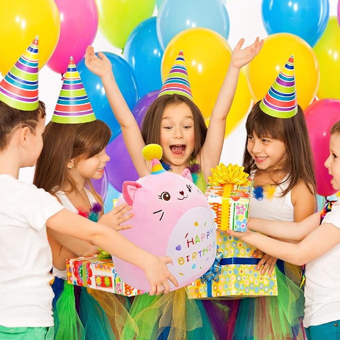 Cat Plush Toy 14 Inch Cute Unicorn Birthday Stuffed Animal Soft Cat Plushies Pillow Pink Doll Gifts for Kid Toddlers Home Room Decoration