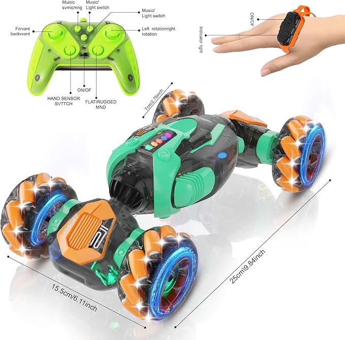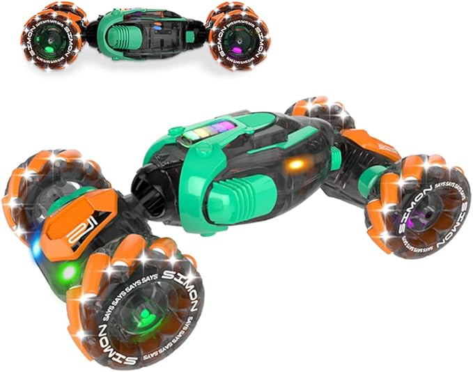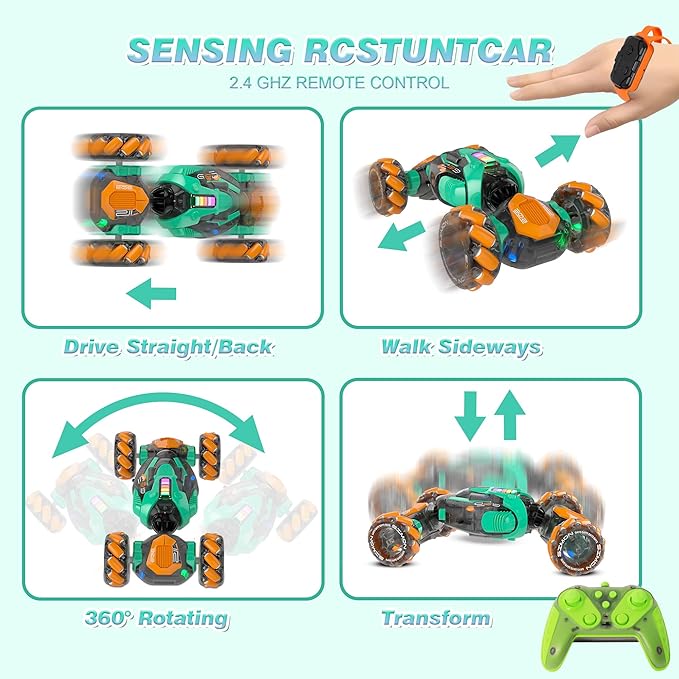RC Gesture Sensing Stunt Car, 360° Rotating 4WD Remote Control Transform Remote & Hand Car, Remote & Hand, Double-Sided Driving with Lights & Music,Birthday Drift Toy Gift for Kids Age 7 8 10 12 Year