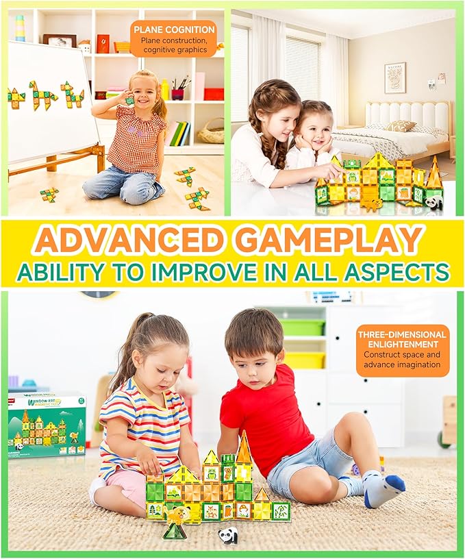 Magnetic Tiles - 47 Pcs Wildlife Building Blocks Set - Sensory Travel Toys for Toddler - STEM Construction Playboards Stacking Toy - DIY Window Art - Birthday Gifts for Boy, Girl