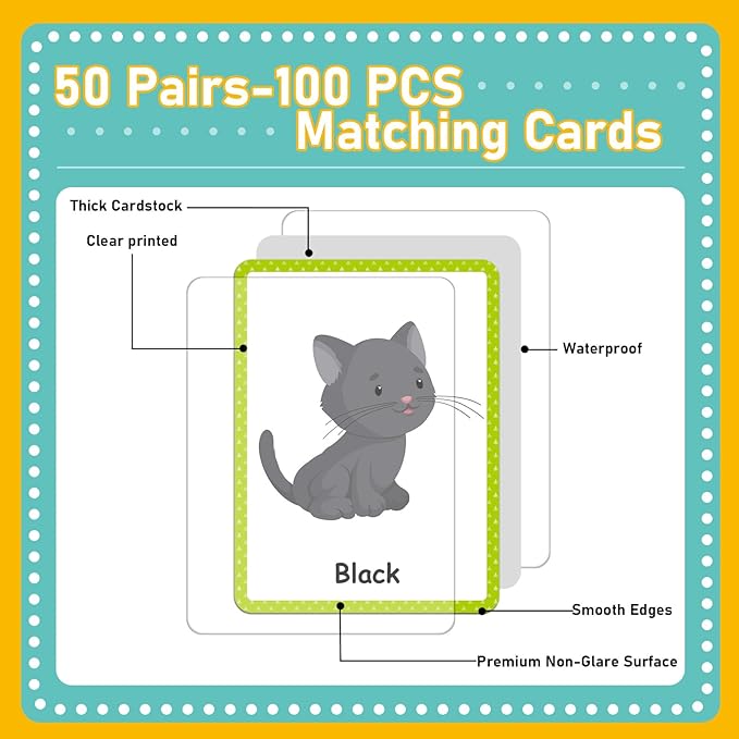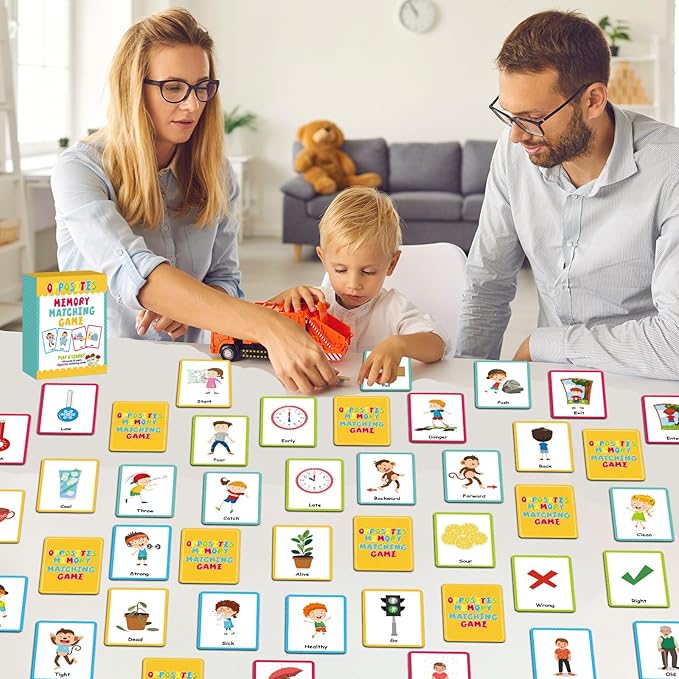 About This 100PCS matching cards: 100 cards (50 pairs) feature delightful opposites-themed images such as big and small, and more.... Read more