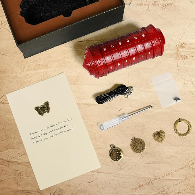 • 【INTRODUCTION】This improved Da Vinci Code cryptex features a six-digit password, with six turntables engraved 0–9, offering 1,000,000 possible combinations. The initial code is 070479, a tribute to U.S. Independence Day, but it can be reset easily using included tools. Create your own secret by setting a personal code, turning this puzzle box into both a secure storage piece and a mystery-filled experience for puzzle lovers.