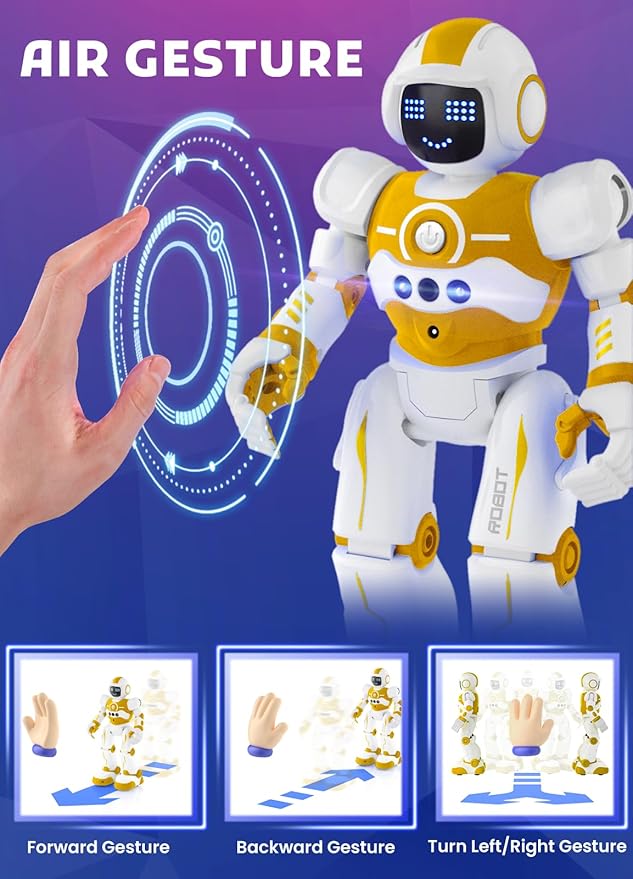 Robot Toys for Kids,Programmable Remote Control Smart Walking Dancing Robot Toy with Gesture & Sensing for Age 4 5 6 7 8 9 10 Year Old Boys for Birthday Present,Yellow