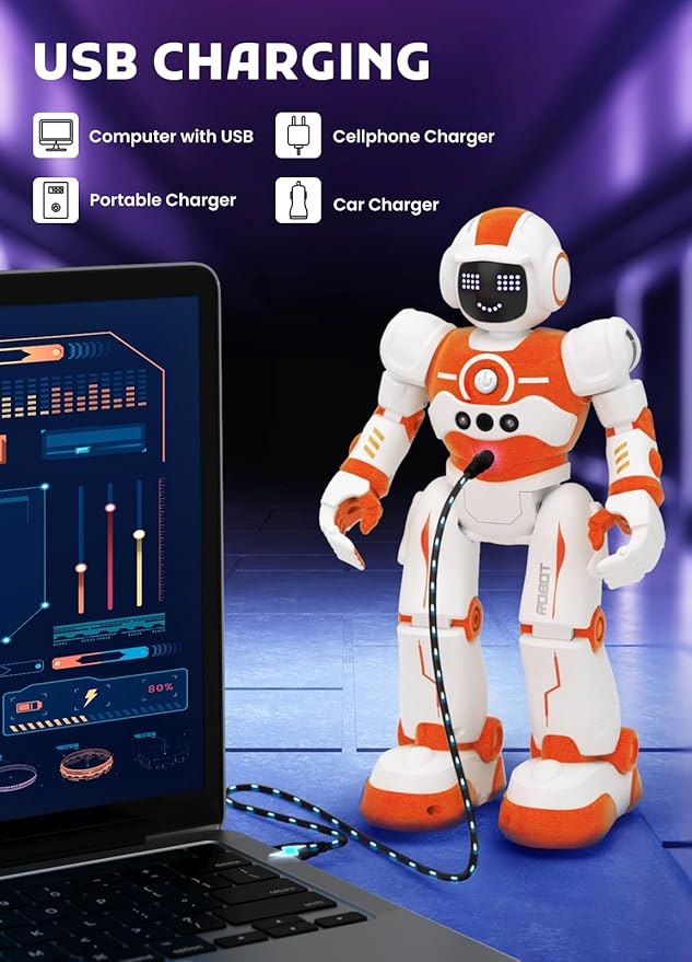 Robot Toys for Kids,Programmable Remote Control Smart Walking Dancing Robot Toy with Gesture & Sensing for Age 4 5 6 7 8 9 10 Year Old Boys for Birthday Present,Orange
