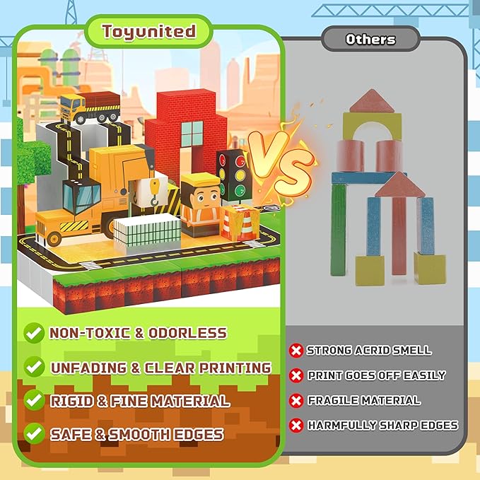 138PCS 0.8In/2CM Magnetic Blocks, Constructions -Themed Magnet Cubes Building Block Toy for Kids 3+, Christmas & Birthday Gifts
