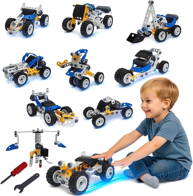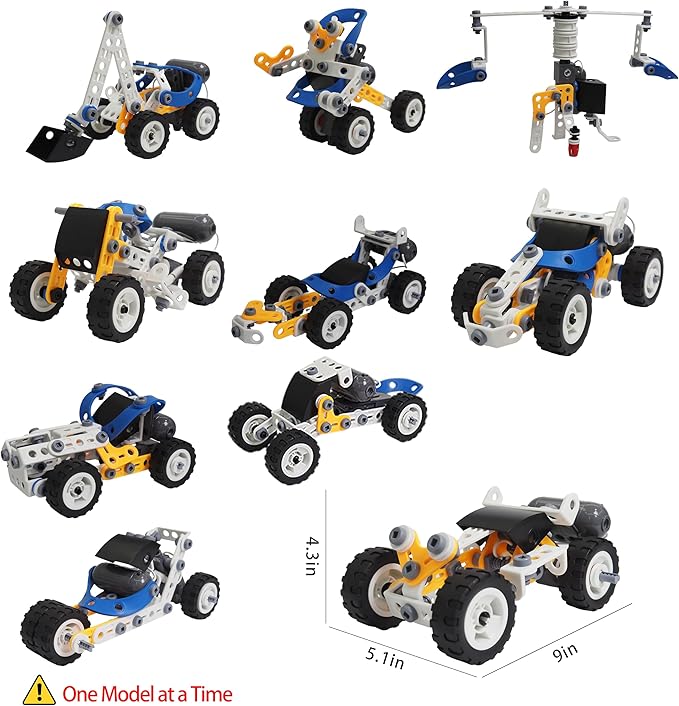 10-in-1 STEM Toys for 5 6 7 8+ Year Old Boys Girls, Electric Building Toys Erector Set for Kids, Motorized Educational Toys Building Kit