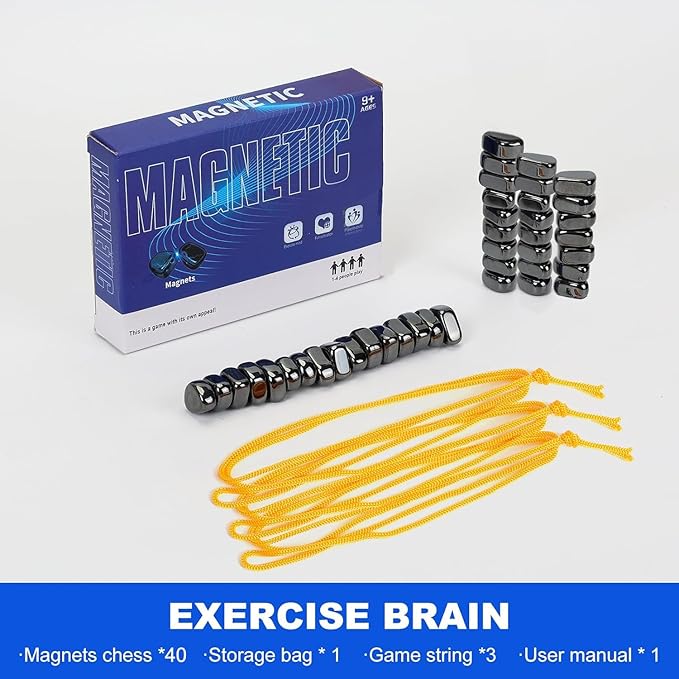 Magnetic Chess Set with 40 Travel-Stones, 3 String & Portable Storage Bag, Strategy Board Game for Family Game Night, Indoor Outdoor Use for Kids Adults (Age 9+)