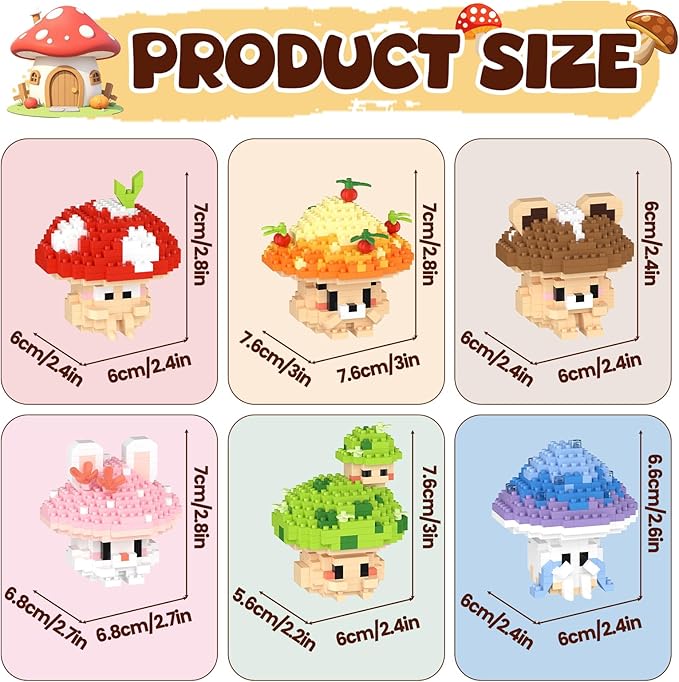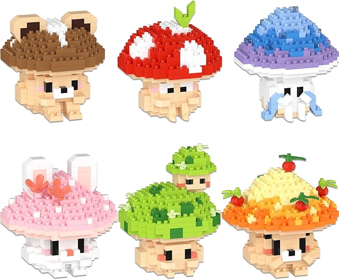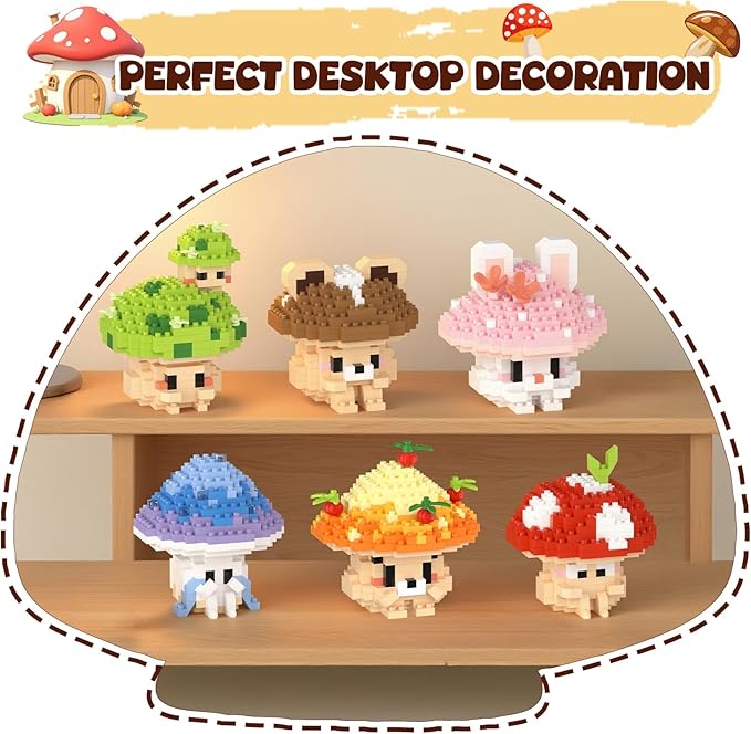 6 Cute Mushroom DIY Models (Animals & Plants), Educational STEM Toys, Creative Desk Decor & Collectible Gifts for Kids Age 8+ & Adults, Ideal for Birthday & Christmas