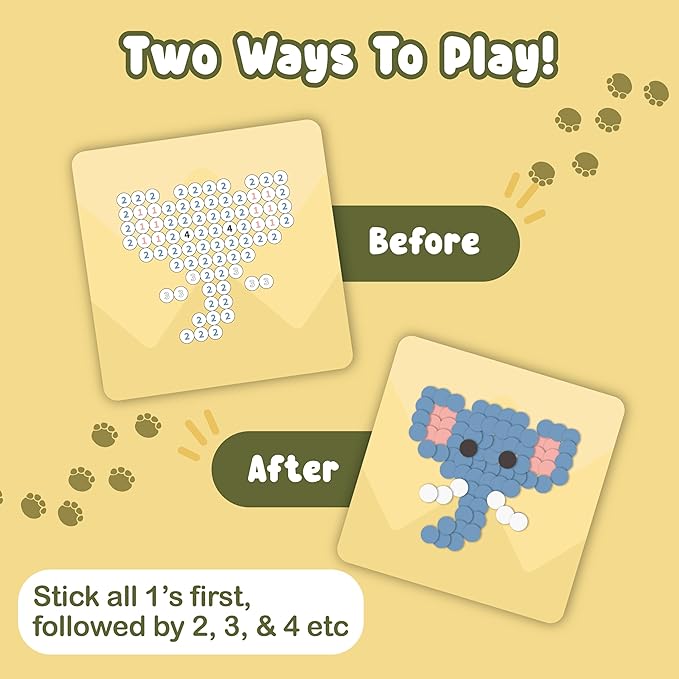 About This DOT BY DOT STICKER ART ACTIVITY: Reveal 4 wild animals with this engaging sticker art kit for kids.... Read more