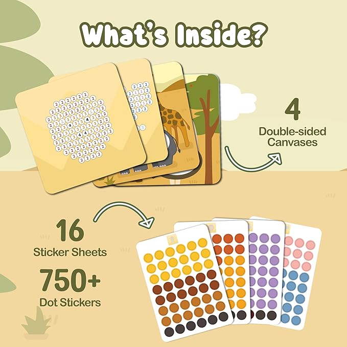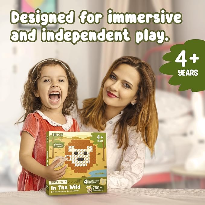 BINCA Dotties Dot Art Activity Kit, 750+ Stickers, Wild Animals Mess-Free Activities, DIY Dot Sticker Art for Toddlers, Kids Travel Activities, Craft Kits & Gifts for Boys & Girls Ages 4,5,6,7