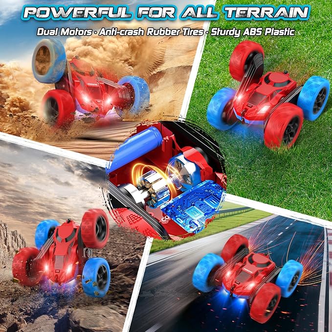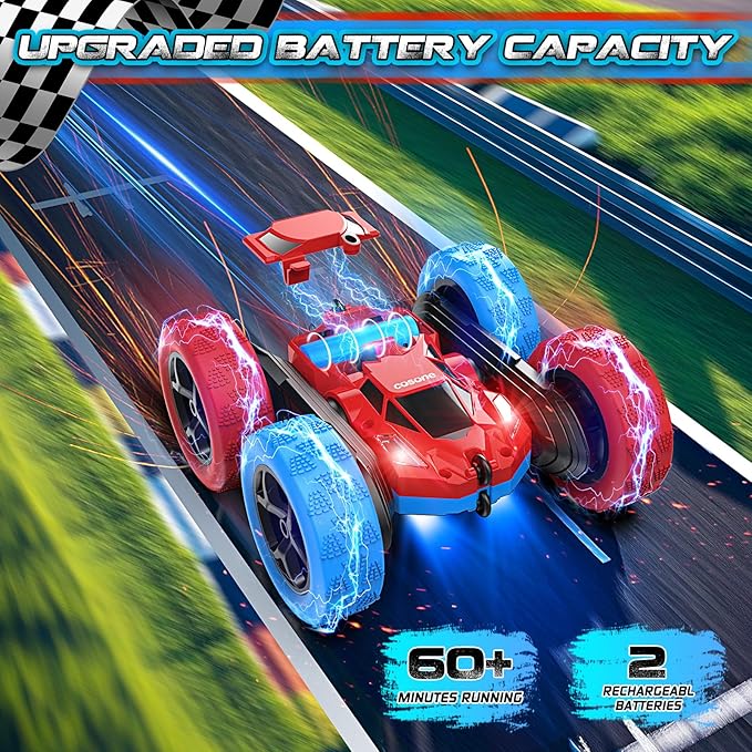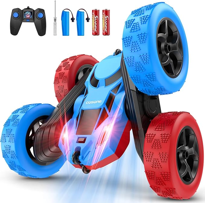 cosone Remote Control Car RC Cars for Kids Toys Rechargeable 360° Rotating 2.4Ghz RC Stunt Car for Kids Birthday Gift for 6 Years Old Boys Toys 6 7 8 9 10 Years Old Boy Gift Ideas (Blue&Red)
