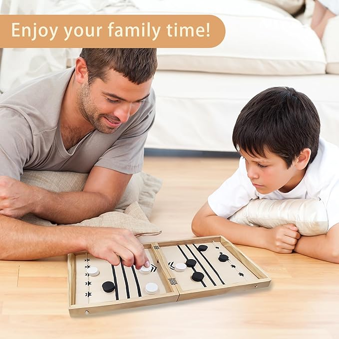 4 in 1 Wooden Fodable Fast Sling Puck Game Set – Chess, Tic Tac Toe, Checkers Board Game for Kids & Adults, Portable Tabletop Family Toy for Travel & Game Night
