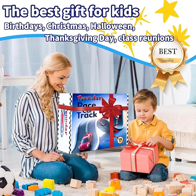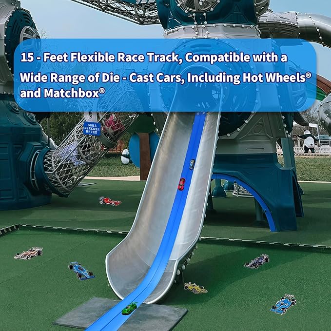 Flex Track 15 Ft Starter Set – Flexible Race Car Ramp Track for Kids, Double-Sided Racetrack for 1:64 Diecast Cars, Compatible with Hot Wheels, Ages 3 & Up with Suction Cups,Blue
