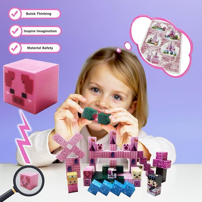 Magnetic Blocks Princess Castle Magnet Cubes 100Pcs Montessori Building Block Sets STEM Sensory Construction Toys for Boys Girls Ages Kids 3-12 Birthday Party Gifts