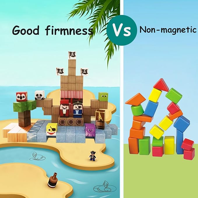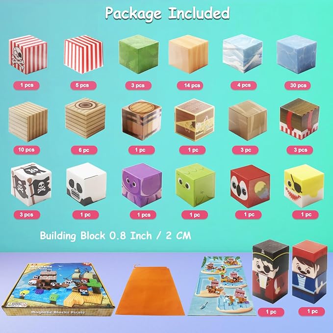 Magnetic Blocks Pirate Ship Magnet Cubes 100Pcs Montessori Building Block Sets STEM Sensory Construction Toys for Boys Girls Ages Kids 3-12 Birthday Party Gifts