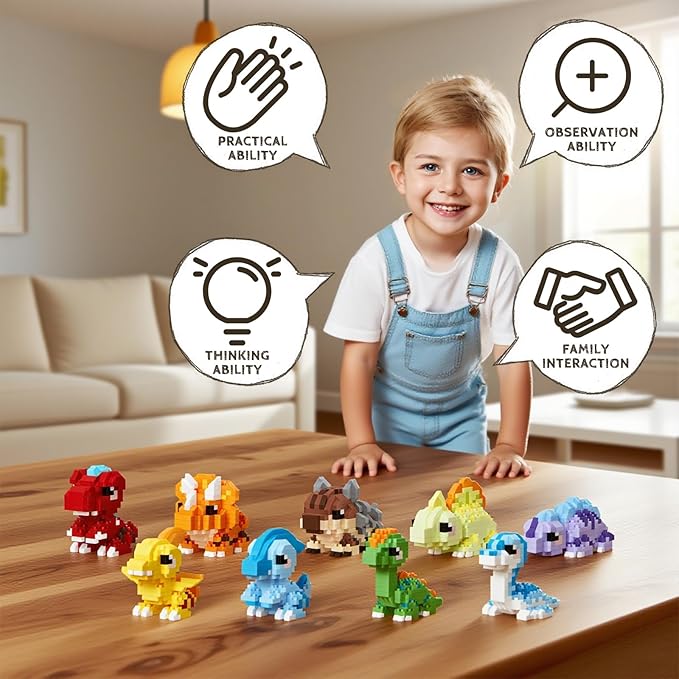 Dinosaur Micro Mini Building Block Sets Birthday& Party Gift for Kids, Animals Buildling Model Kits, Micro Mini Bricks Dino World Series Toys for Kids(9 Boxes)