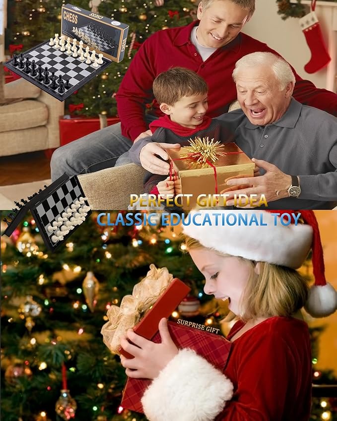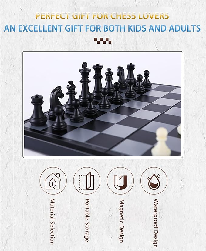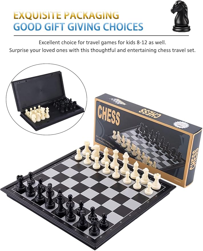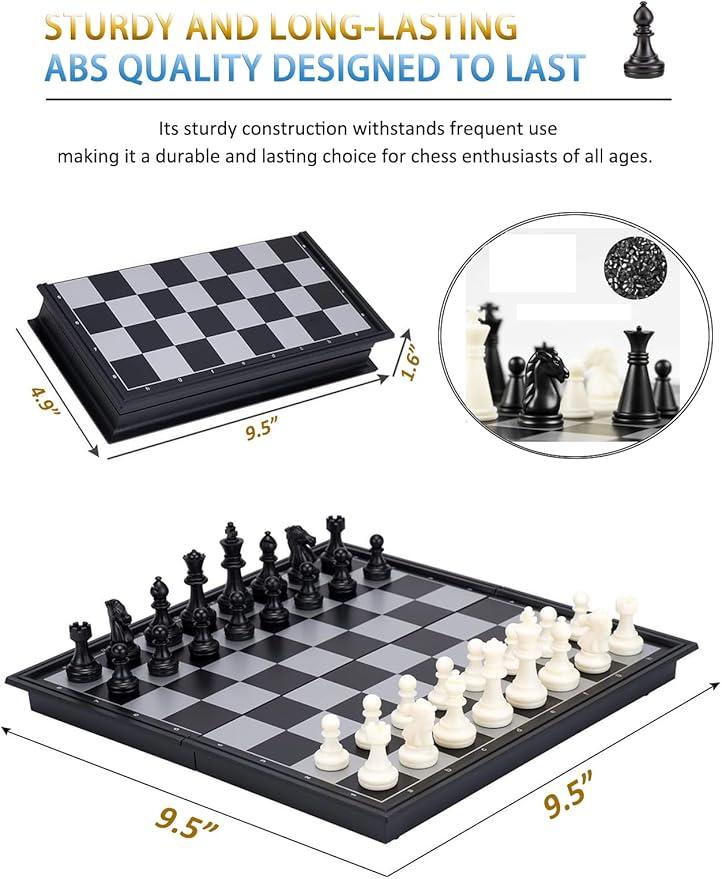 Magnetic Travel Chess Set - 9.5 Inches Small Chess Folding Board Games, Foldable & Portable Gifts Classic 2-Player Strategy Family Games Educational Toys for Teens and Adults
