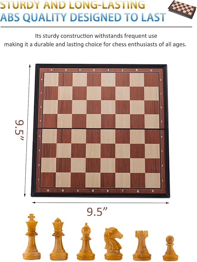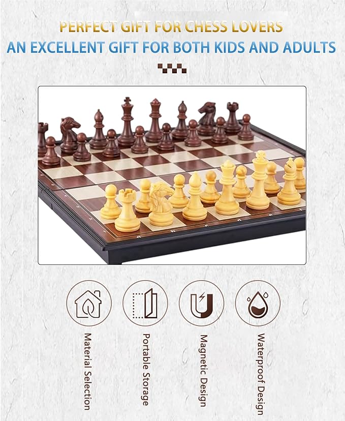 Chess Sets Magnetic Board Games - 9.5 Inches Travel Chess Set for Teenager & Adults, Wooden-Style Folding Portable Chess Gifts Classic 2-Player Strategy Family Game for Beginner and Professional