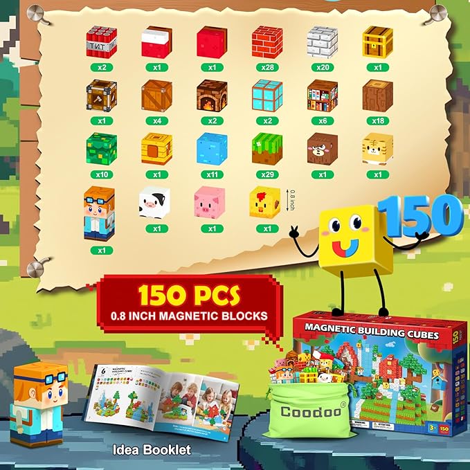 150 PCS Magnetic Blocks Toddler Toys, Magnetic Tiles Building Toys Blocks Forest Set for Kids Aged 3+, STEM Sensory Outdoor Toys Birthday Gifts Classroom Must Haves for Toddler Boys Girls 3 4 5 6 7 8
