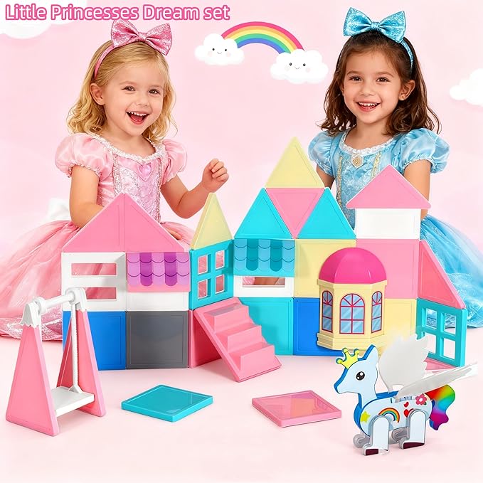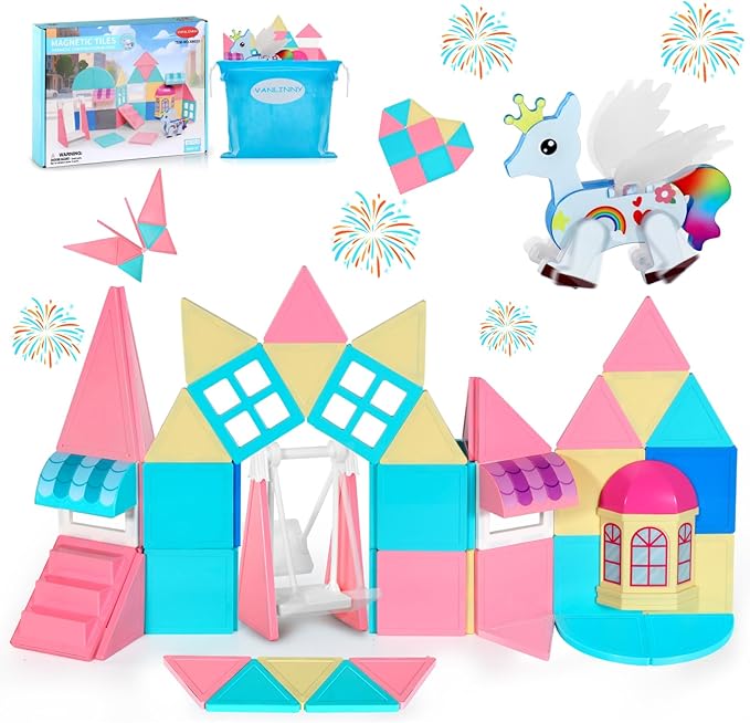 About This Magical Unicorn Castle Building Set: This unicorn magnetic tiles set features our newest posable unicorn figure with movable... Read more