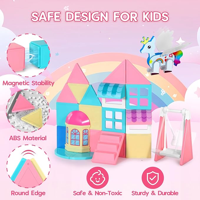Unicorn Toys for Girls Age 4-6, Unicorn Magnetic Tiles, Movable Magnetic Tiles 3D Educational Toy, Magnetic Building Blocks for Kids, Magnetic Construction Set, Xmas Birthday Gifts for Boys and Girls