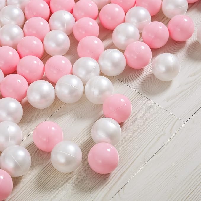 About This ❥ SAFETY - Pack of 200 pcs toy Balls with pink and pearl white colors. Made of food... Read more