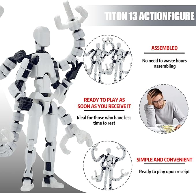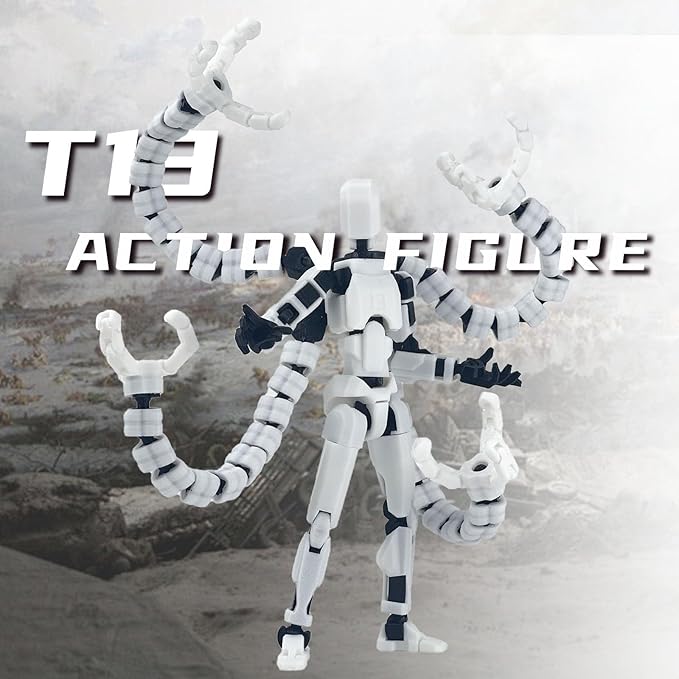 2PCS T13 Action Figure Already Assembled, 3D Printed Multi-Jointed Movable Robot 13 Action Figures Desktop Decorations for Game Lovers Toy, for Collectors Desktop Decorations (White Black)