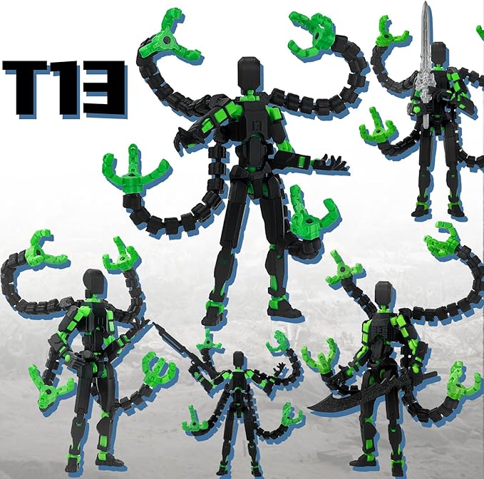 2PCS T13 Action Figure Already Assembled, 3D Printed Multi-Jointed Movable Robot 13 Action Figures Desktop Decorations for Game Lovers Toy, for Collectors Desktop Decorations (Black Green Red)