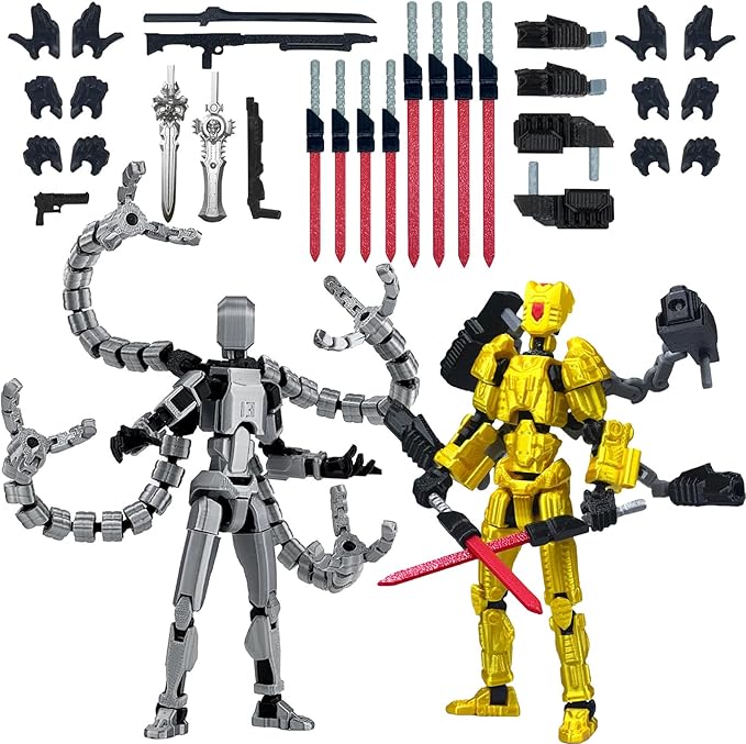 2PCS T13 Action Figure Already Assembled, 3D Printed Multi-Jointed Movable Robot 13 Action Figures Desktop Decorations for Game Lovers Toy, for Collectors Desktop Decorations (Gray Yellow)
