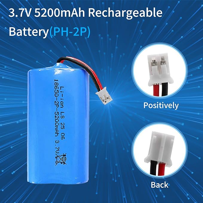 About This Battery Capacity: 5200mAh, Size: 6.5x1.8x3.6cm/2.56*0.71*1.42inch, Weight: 110g, PH-2P Plug, 3.7v 18650 battery Versatile Compatibility: It is suitable for... Read more
